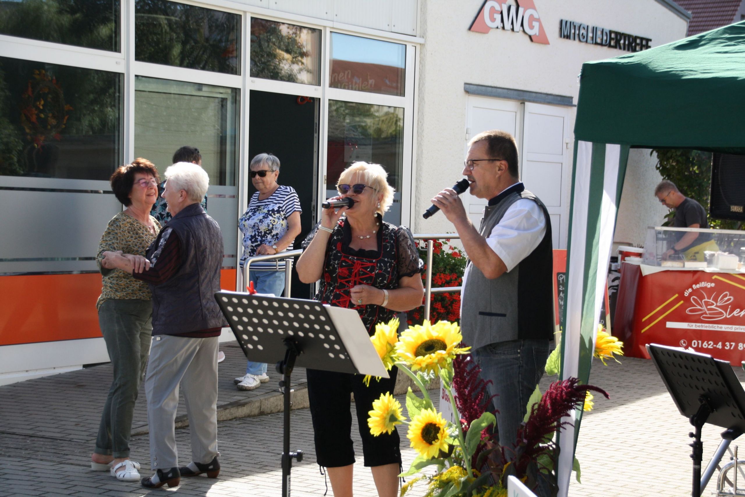 Unser Mitgliedertreff lädt am Samstag alle zum Frühschoppen mit der Kleinen Gubener Blasmusik auf den Hof in der Erich-Weinert-Straße 1a ein.
